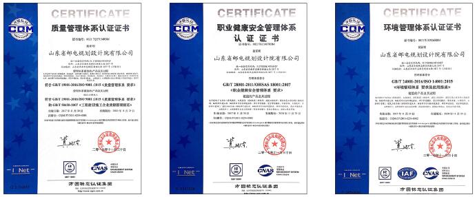2001年通过ISO9001质量管理体系认证,2014年通过ISO14001环境管理体系、ISO45001职业健康安全管理体系认证,2018年通过ISO/IEC27001:2013信息安全管理体系认证。 质量、环境和职业健康安全管理方针: 精心设计施工,永保质量第一; 实施污染预防,保护生态环境; 坚持以人为本,关爱员工健康; 追求卓越管理,创建品牌服务。 公司始终保持单项工程设计合格率100%, 院管单项工程设计优良率95%以上。